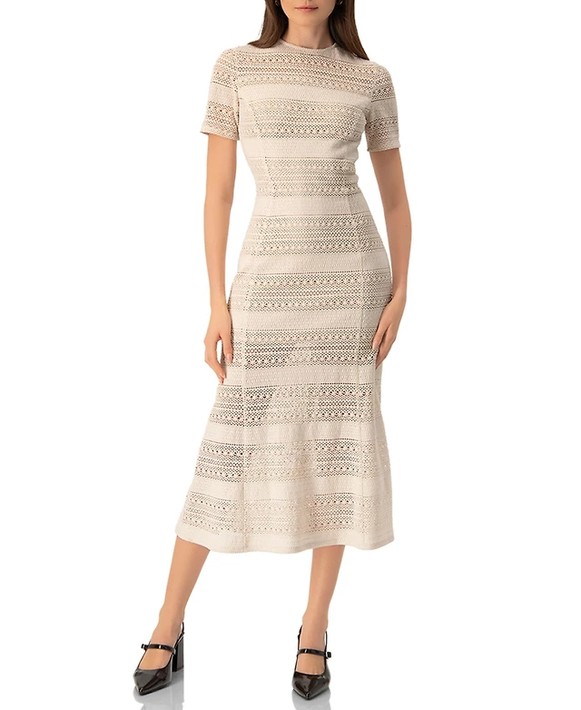 Daisy Street Fog Jacquard Satin Lace Trim Midi Dress