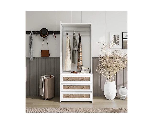 Streamdale White Tall Storage Cabinet with 3 Drawers and Adjustable Shelves