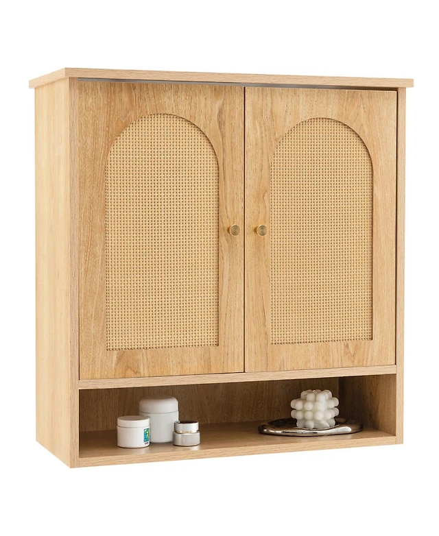 Casainc 27.56" Two-Door Wall Cabinet With Glass Front and Three-Tier Storage Woven DetailBrand