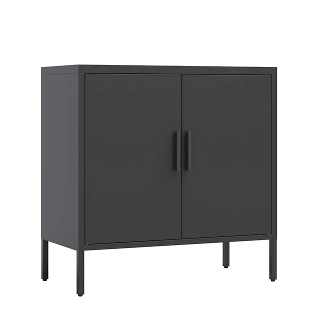 Homsee High quality black iron frame, 4-door iron mesh steel wood cabinet, storage cabinet, pantry