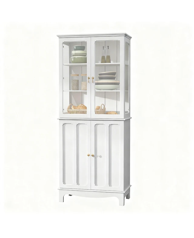 Streamdale Furniture Farmhouse Pantry Cabinet - Pull-Out Shelves & Glass Doors