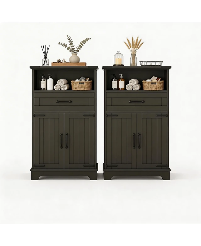 homfan Farmhouse Bathroom Cabinets Set of 2 - Wooden Furniture with Doors and Drawers Freestanding Storage Unit for Bathroom, Kitchen, Living Room