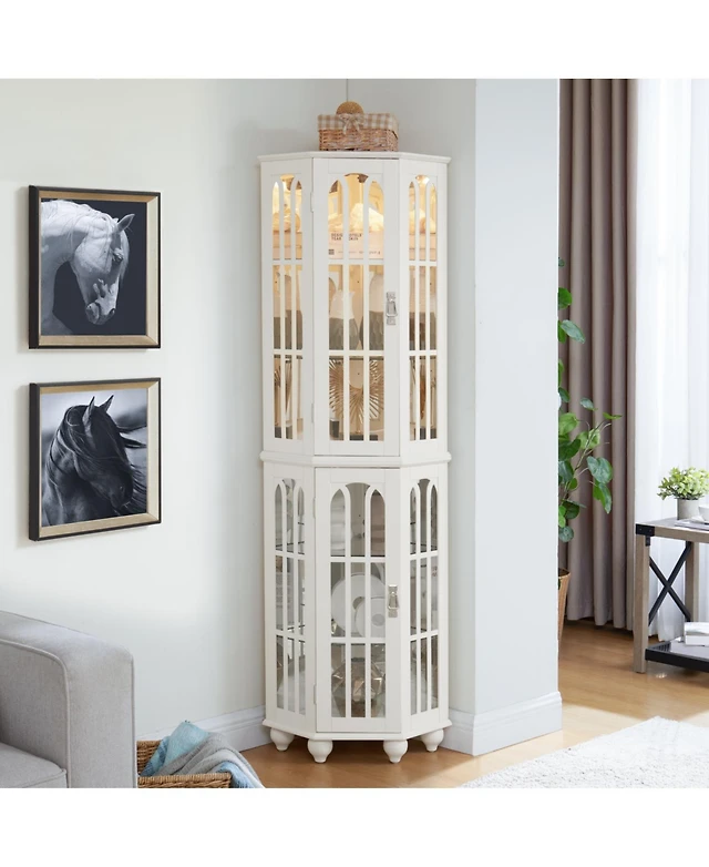 Yigii Arched Kitchen Pantry Cabinet with Adjustable Shelves and Tempered Glass Doors