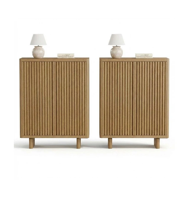 Rainsken Modern Fluted Sideboard Cabinet, Wood Storage Buffet Console with 2 Drawers, 4 Doors and Adjustable Shelves for Living Room