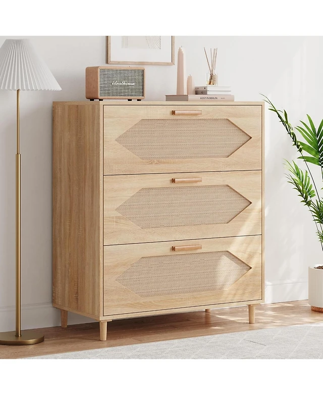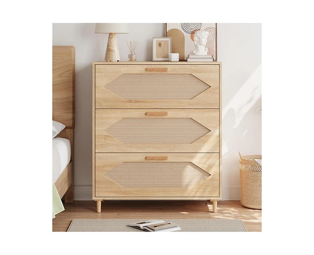 Simplie Fun Modern Rattan Dresser with 6 Drawers for Organized Storage