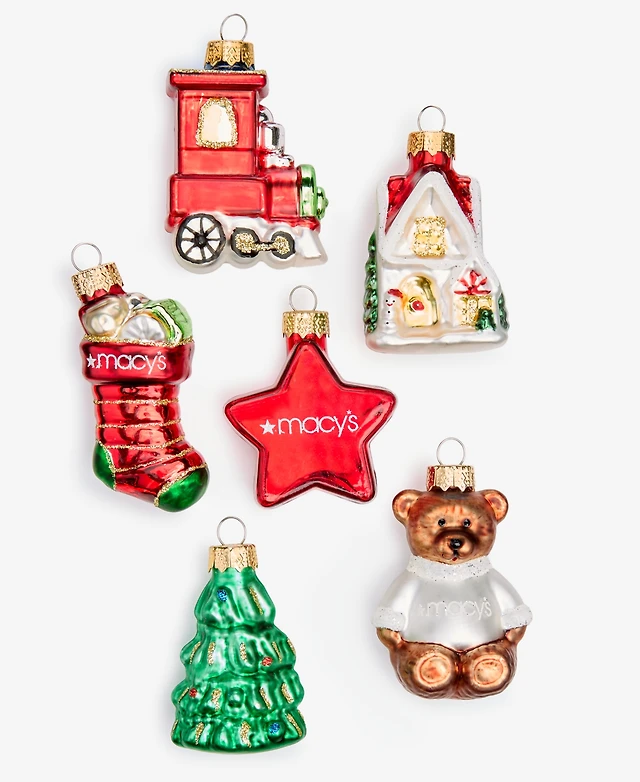 Holiday Lane Heritage Set of 6 Glass Macy's Ornaments, Macy's Exclusive
