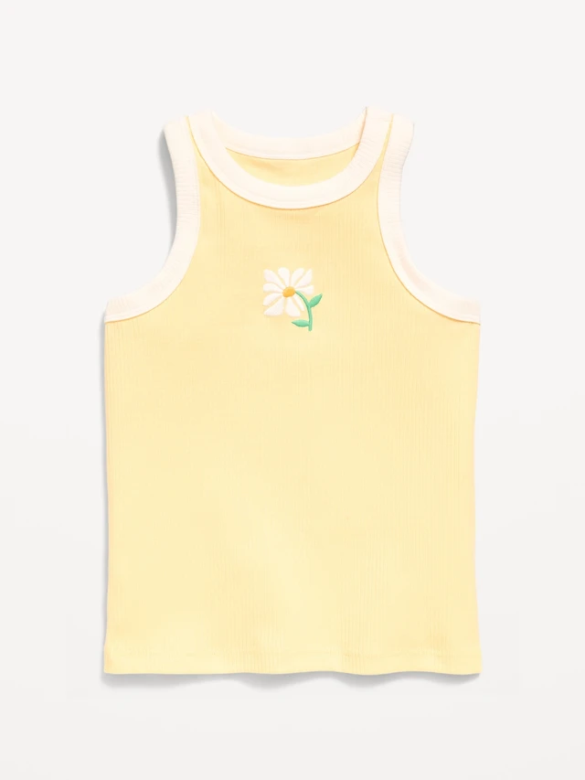 Girls Contrast Ribbed Cross Back Tank Top