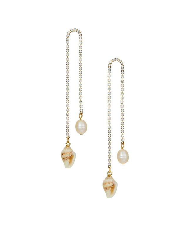 Sohi Women's White Shell Drop Earrings