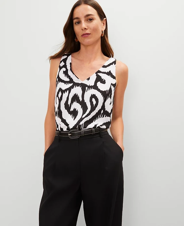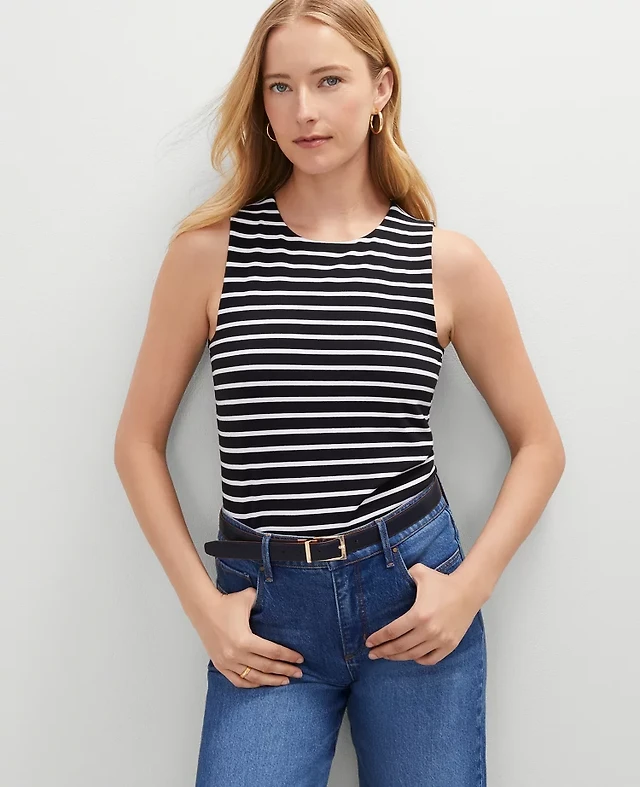 Ann Taylor Textured Striped Sweater Shell Top White/Black Multi Women's