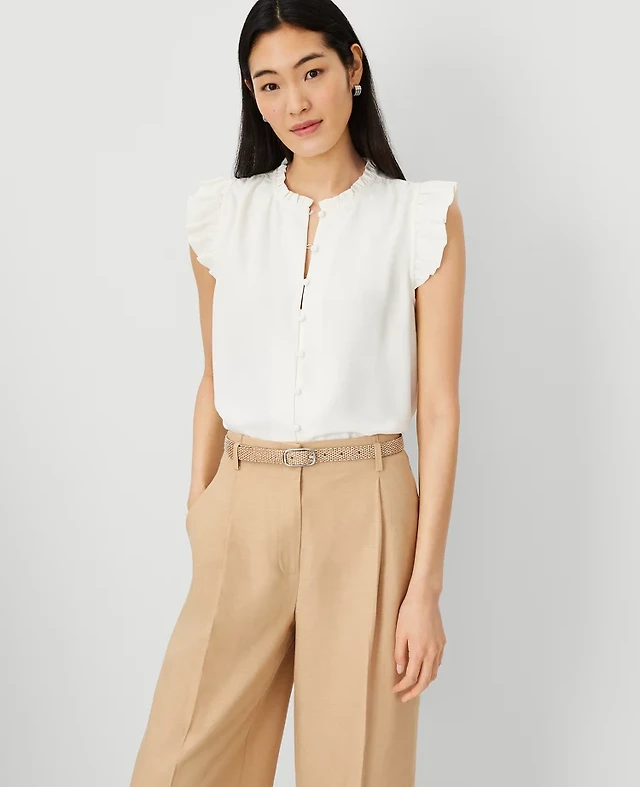 LOFT Versa Crepe Drape Pleated Relaxed Straight Pants