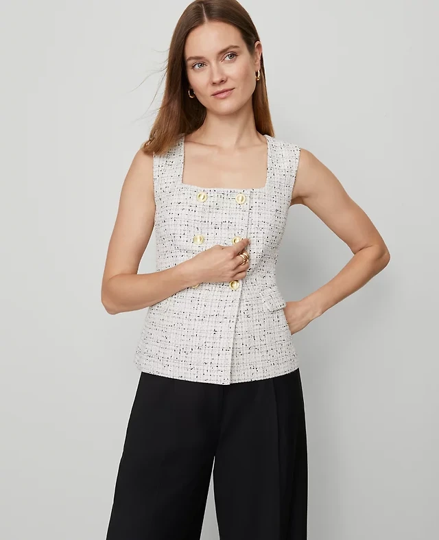 Ann Taylor Tweed Cropped Vest Maritime Blue Women's