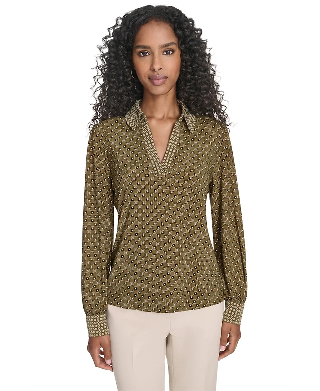 Dkny Women's Long Sleeve Collared Shirt Dress