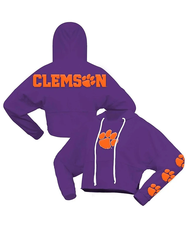 Spirit Jersey Women's Purple Clemson Tigers Oversized Cropped Pullover Hoodie