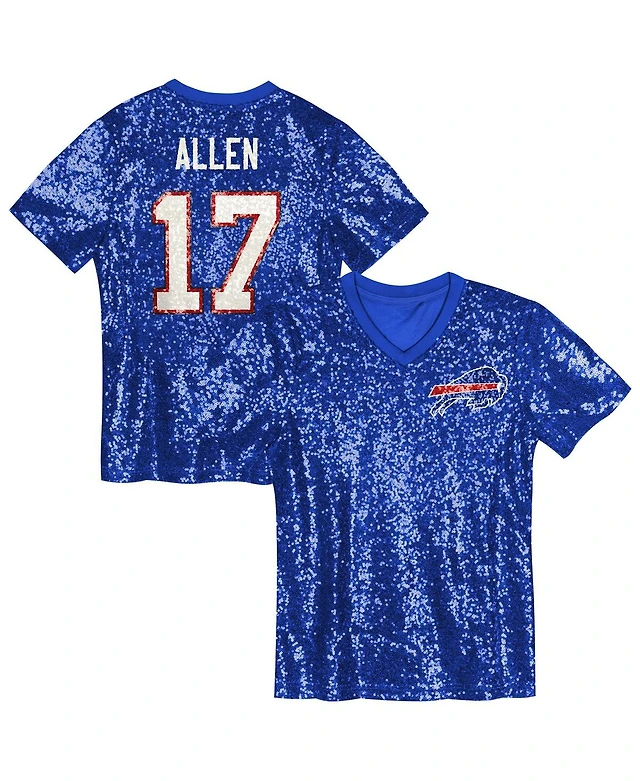 Outerstuff Big Girls Josh Allen Royal Buffalo Bills Sequin V-Neck Fashion Jersey