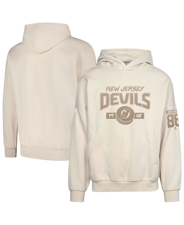 Levelwear Men's Jack Hughes Khaki New Jersey Devils Oversized Contact Name Number Pullover Hoodie