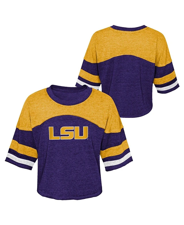 Big Girls Purple Distressed Lsu Tigers Sunday Friday Sleeve Stripe Jersey T-shirt