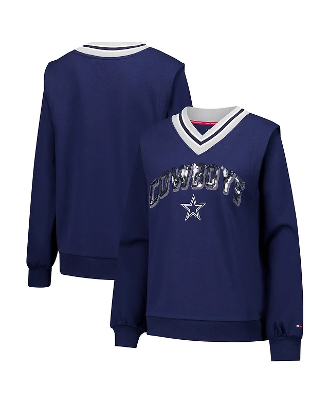 Tommy Hilfiger Women's Navy Dallas Cowboys Alice V-Neck Pullover Sweatshirt