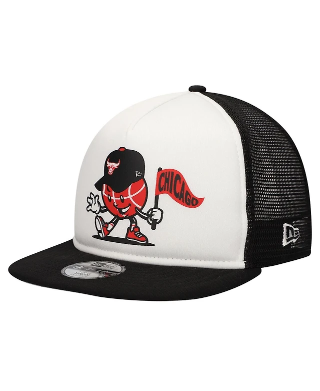 New Era Big Boys and Girls White/Black Chicago Bulls Court Sport Mascot 9FIFTY Snapback Hat