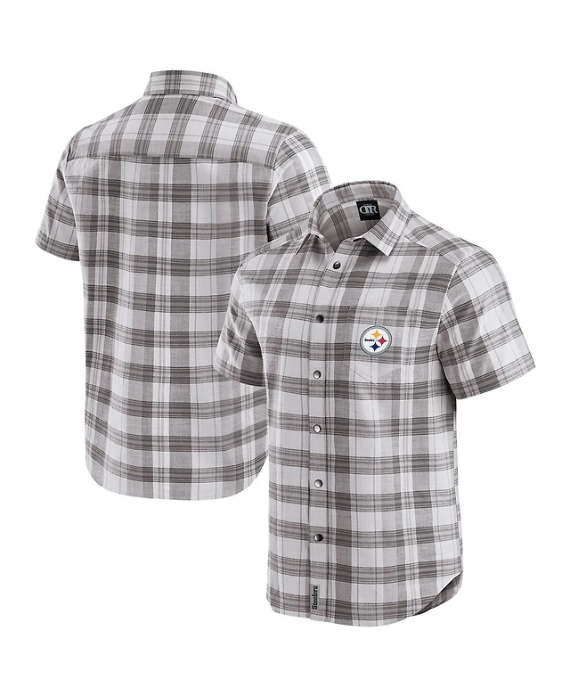 Fanatics Men's Darius Rucker Collection by Gray Pittsburgh Steelers Team Plaid Short Sleeve Full-Snap Shirt