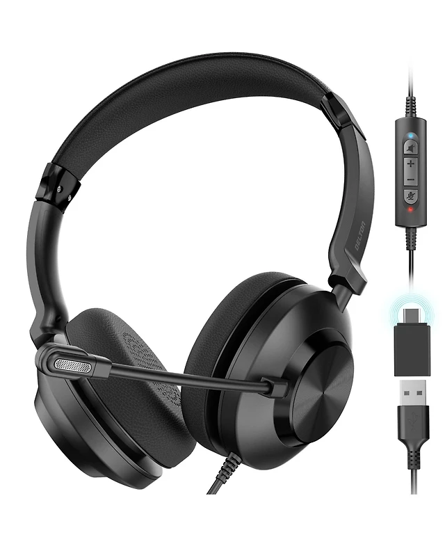 Delton 30Y Wired Computer Headset, Ms Teams Compatible, Mono Headphones With Dual Noise-Cancelling Microphones, In-Line Controls, On-Ear Usb Headset f