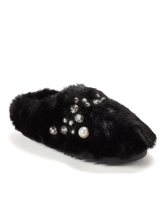 Dearfoams Women's Jessica Furry Crossband Slide Slipper