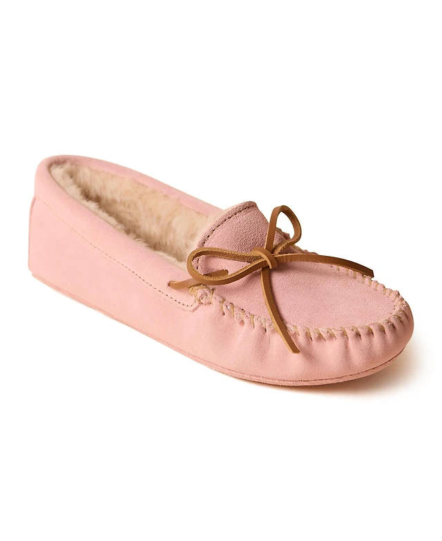 Dearfoams Women's Genuine Suede Fold Over Moccasin House Shoe Slipper