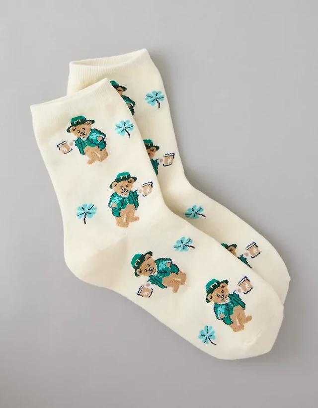 AE St. Patty's Teddy Bear Cropped Crew Socks