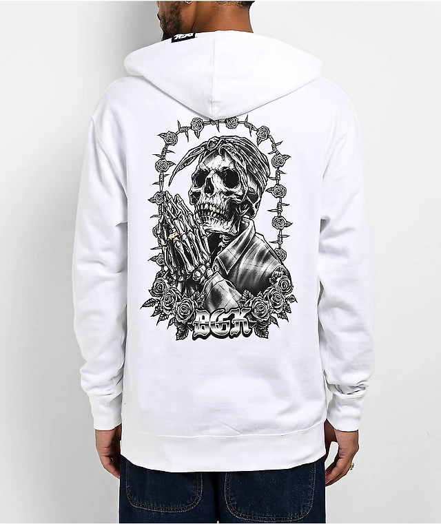Ed Hardy Flame Skull Ivory Zip Hoodie