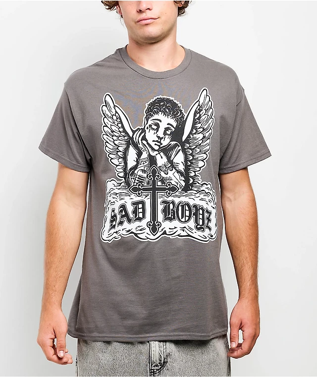 Ed Hardy Wolf Head Rhinestone Charcoal T-Shirt