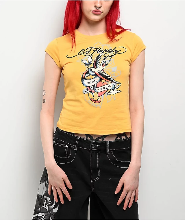 Ed Hardy True Eagle Raglan Black & Red Crop T-Shirt