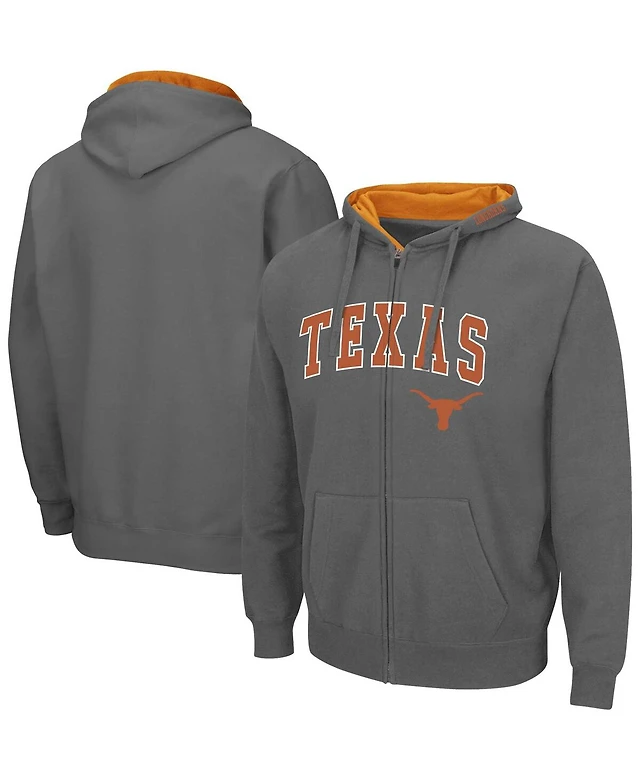 Men's Colosseum Charcoal Texas Longhorns Arch & Team Logo 3.0 Full-Zip Hoodie