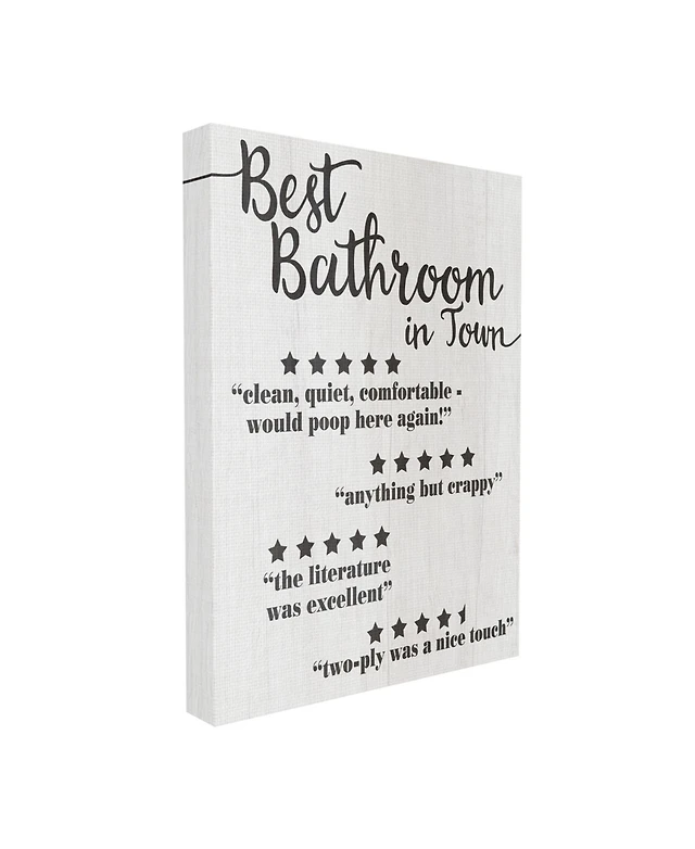 Stupell Industries Five Star Bathroom Funny Word Black and White Textured Design Stretched Canvas Wall Art, 16" x 20"