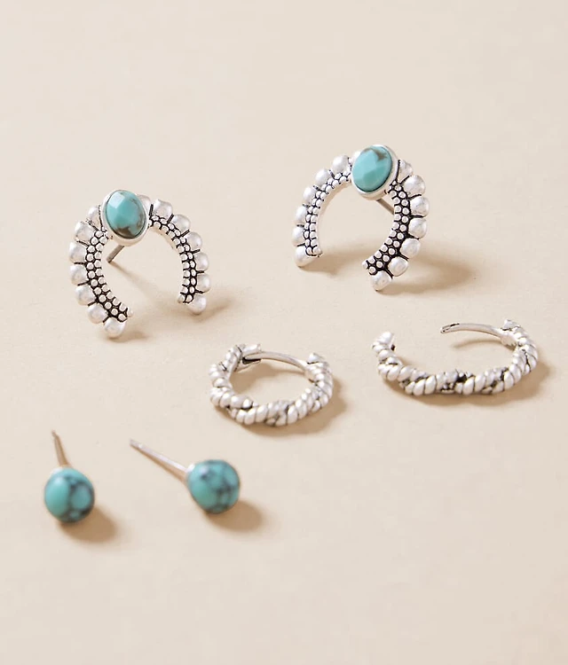 Guess Silver-Tone 6-Pc. Set Mixed Crystal Stud & Textured Hoop Earrings