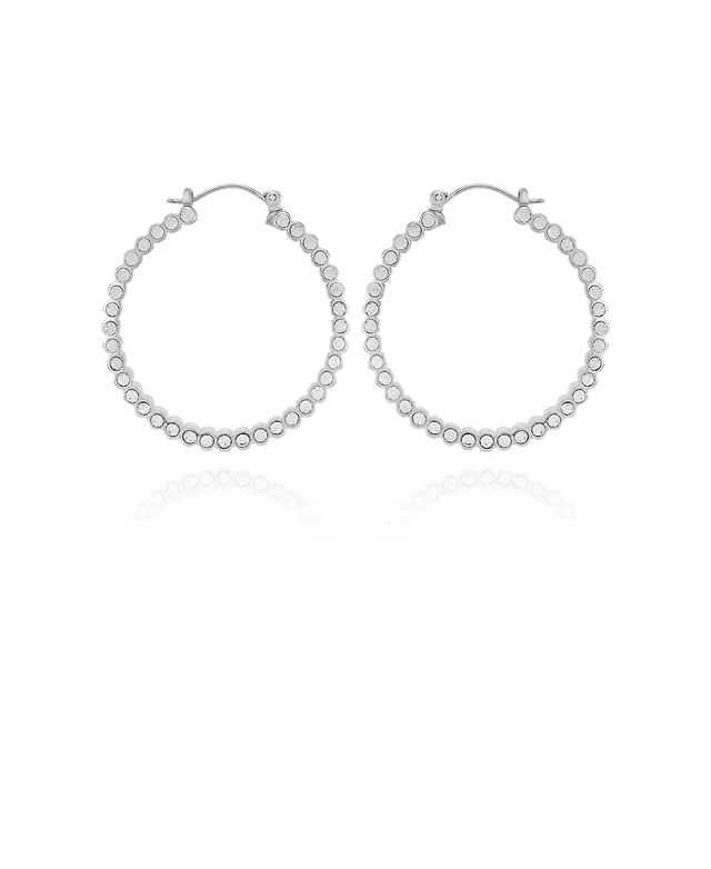 And Now This Cubic Zirconia Silver Plated Ribbed Texture Hoop Earring