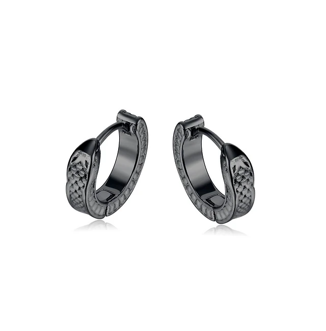 Italian Gold Snake Texture Hoop Earrings in 10k Gold 50mm