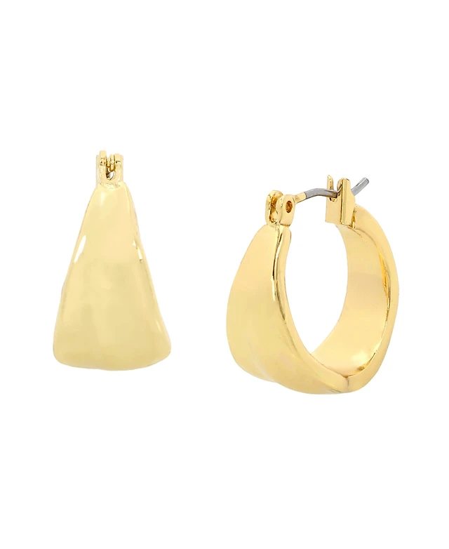 T Tahari Gold-Tone Textured Rounded Hoop Earrings