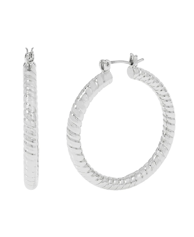 Macy's Silver-Tone Textured Wide Large Hoop Earrings, 2.5"