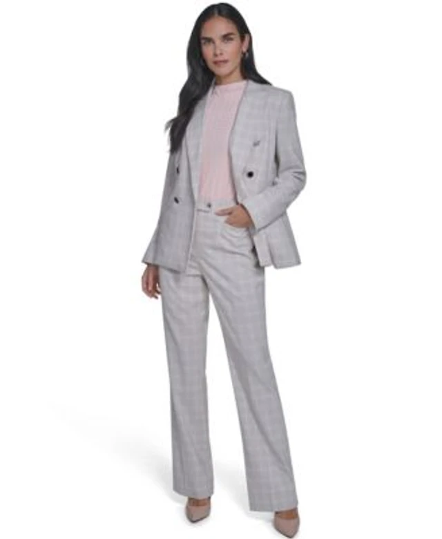 Calvin Klein Womens Windowpane Double Breasted Jacket Textured Mock Neck Cap Sleeve Top Windowpane Modern Fit Pants