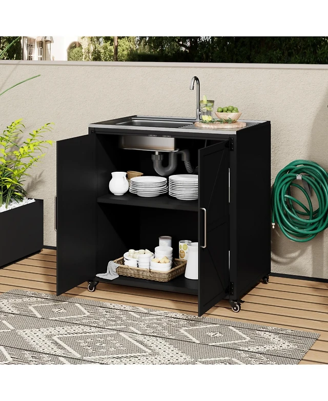 Sugift Multifunctional Rolling Kitchen Baker s Rack with 2-Tier Shelf and Cabinet