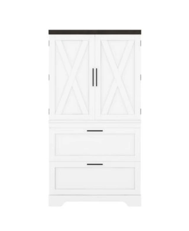 Aobabo Metal Storage Cabinet with 3 Adjustable Shelves and 1 Cloth Rail, White