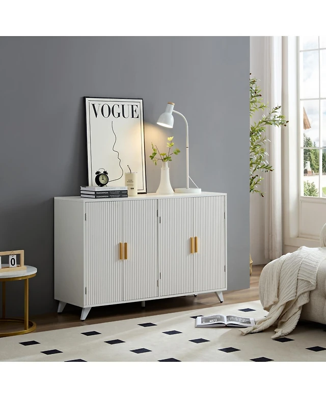 Casainc Retro Minimalist Curved Cabinet with Gold Handles and Adjustable Dividers