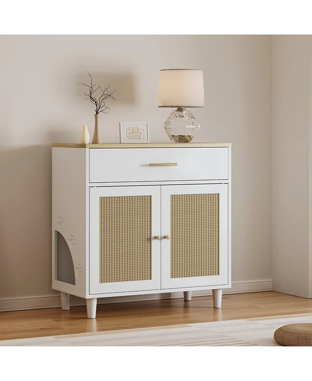 Cozito 31.5" Wooden Litter Box Enclosure with Scratch Pad & Storage
