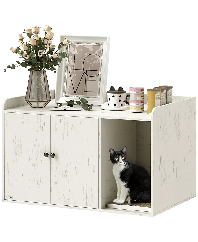 Cat Litter Box Enclosure with Storage Shelves Scratching Pad Charging Station