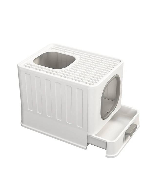 Aostirmotor Large Cat Litter Box Enclosure with Led Stairs Scratcher White