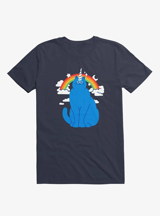 Unicorn Cat Navy Blue T-Shirt