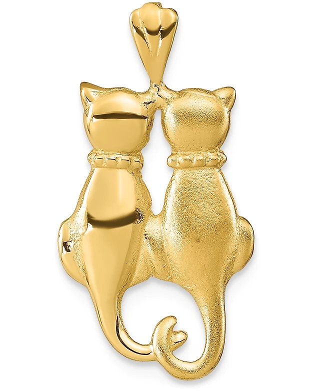 Twin Cats Charm Pendant in 14k Yellow Gold