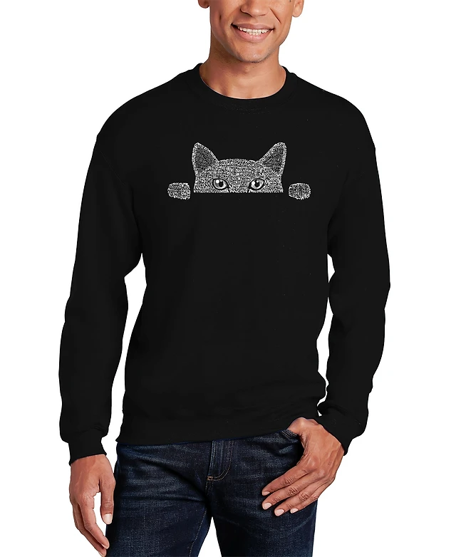 Men's Peeking Cat Word Art Crewneck Sweatshirt