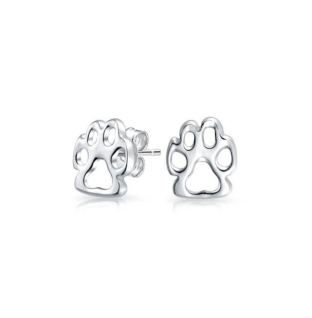 Bling Jewelry Bff Animal Lover Paw Print Stud Earrings Pet Dog Cat in Sterling Silver