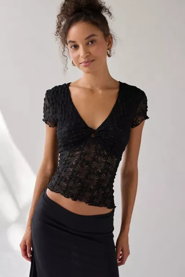 Kimchi Blue Meadow Short Sleeve Lace Bed Jacket