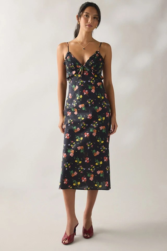 Kimchi Blue Ruffled Romance Cutout Tie-Back Slip Midi Dress